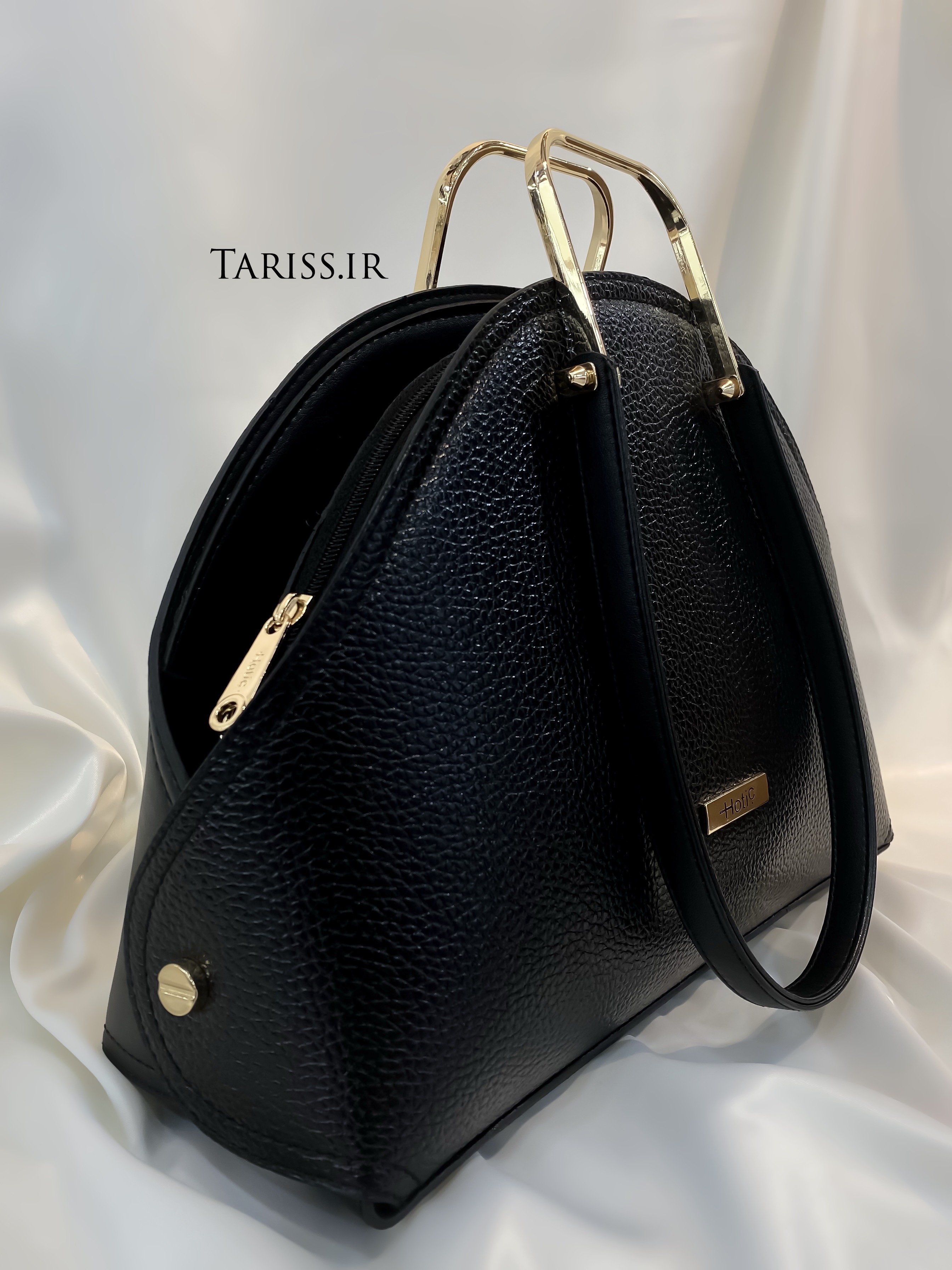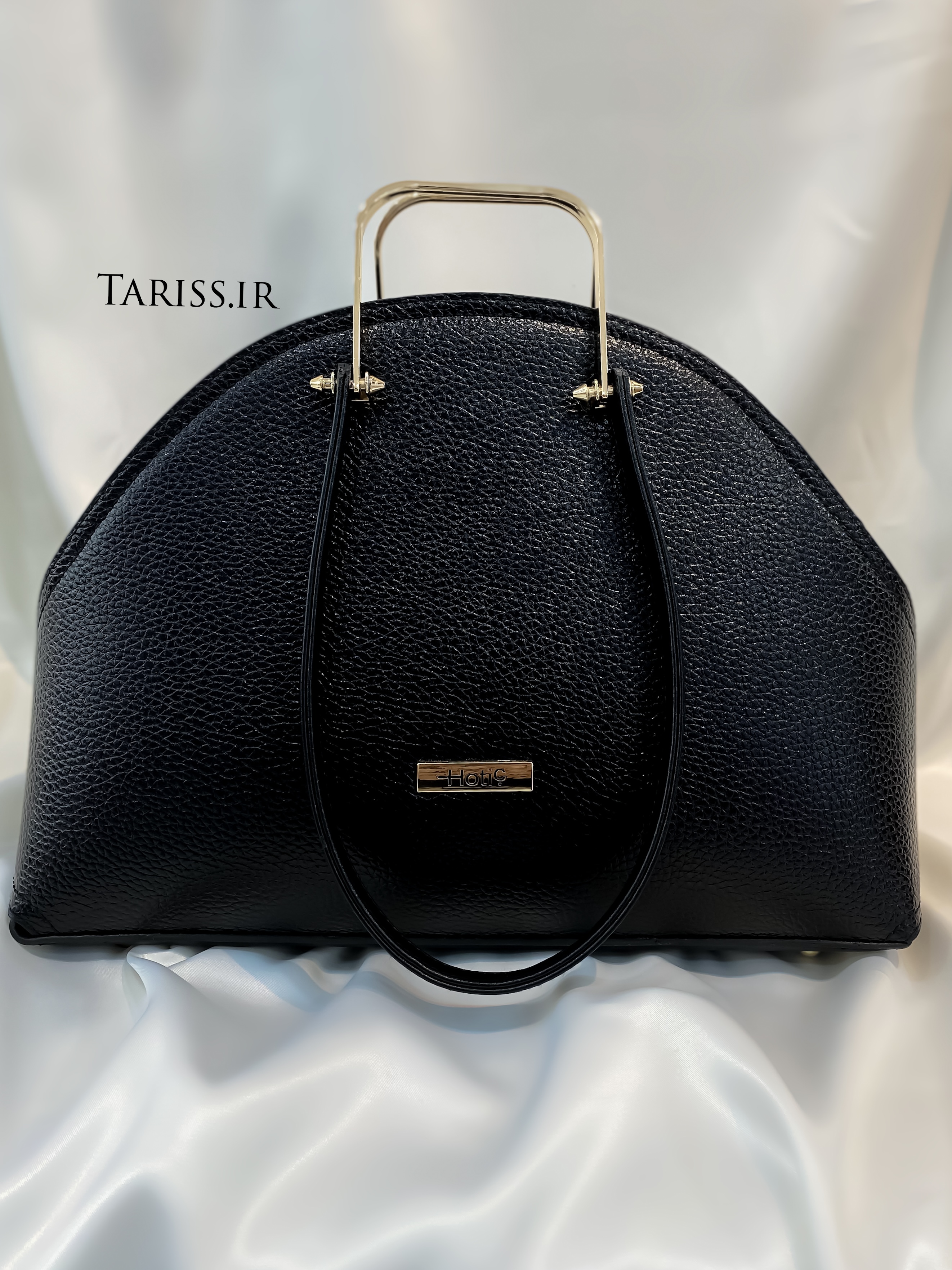 ✅ دارای دو دسته ی فلزی طلایی و چرمی مشکی